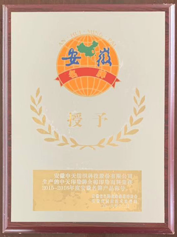安徽省名牌產品稱號